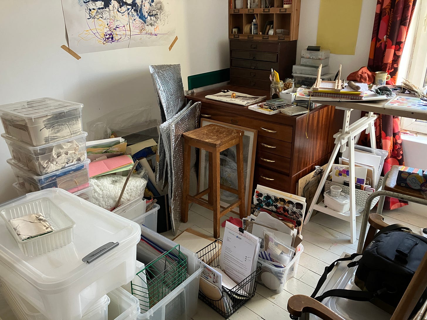 I see you, artist. Eyes wide. A guilty look on your face. Mildly panic stricken at reading the word declutter. Maybe even an unpleasant feeling in your stomach. Because you’ve got stuff. Lots of stuff. And every now and then you think you really should sort it out. But you don’t. Because it has come to feel like a mammoth task. Because you don’t know where to start. Because there are always ‘more important’ things to do. Maybe like me you’re easily overwhelmed and the thought of it is just too much. Or (most likely) you simply cannot get rid of your stuff because… ready for it?… and I quote (every artist who ever lived. Except the one who destroyed all his belongings) “It might come in useful”